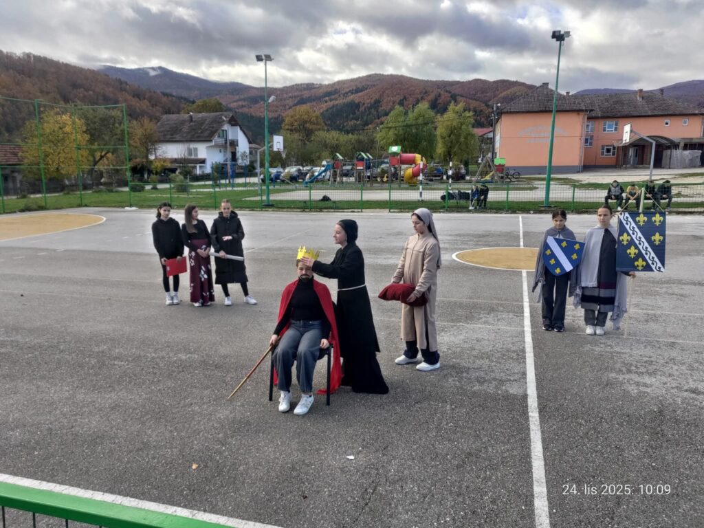 Historijska sekcija pod vodstvom nastavnice Mihaele Kapidžić pripremila je edukativne i kreativne aktivnosti, uključujući performans i prezentaciju o značaju krunisanja i bosanske državnosti.